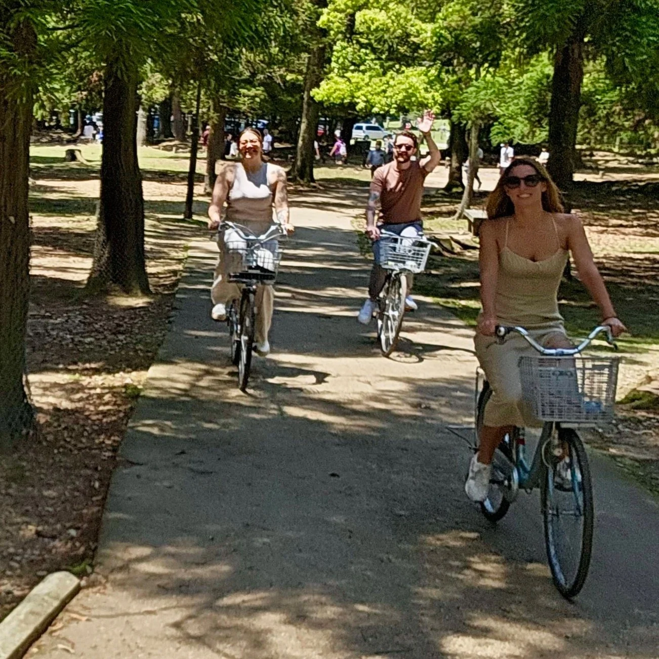 The best way to get around is on bikes. We rented from Nara Bicycle Rental but there seemed to be a number of reputable options. Also, we opted for manual bikes (because are so fit and athletic) but e-bikes are available as well. Now that you’ve secured your bikes it’s a short ride to the Deer Park!